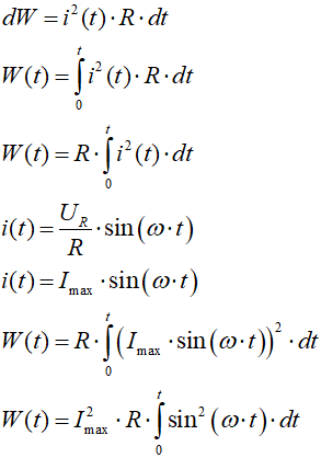 Przepływ prądu zmiennego też wywołuje skutek cieplny, lecz wzór jest bardziej skomplikowany:
