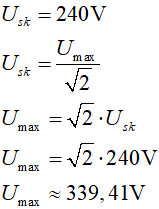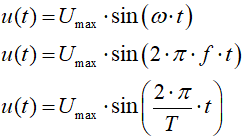 Wzory te pozwalają wyznaczyć wartość chwilową napięcia przemiennego w dowolnej chwili czasu. Do tego celu musimy znać amplitudę Umax i pulsację ω lub częstotliwość f lub okres T.