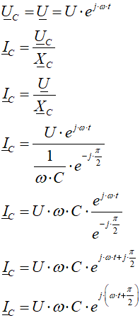 Następnie obliczamy prąd pojemnościowy wg prawa Ohma: