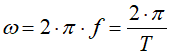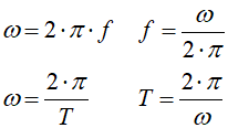 Aby powiązać przebieg sinusoidalny z częstotliwością lub okresem, wprowadza się tzw. prędkość kątową zwaną inaczej pulsacją:
