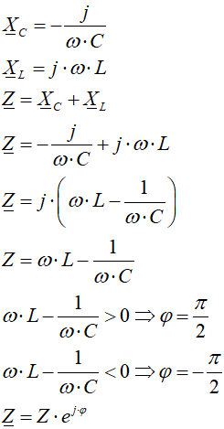 Jeśli w obwodzie znajdują się tylko pojemność i indukcyjność, to rezonans może być niebezpieczny, ponieważ impedancja maleje do zera, a prąd rośnie nieskończenie. Załóżmy jednak, że rezonans nie wystąpił. W takim przypadku obwód ma charakter pojemnościowy lub indukcyjny, w zależności od tego, który z tych składników przeważa. Widać do wyraźnie przy określaniu kąta φ.