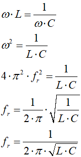 Zwróć uwagę, że dla pewnej częstotliwości impedancja obwodu wynosi 0. Częstotliwość taką nazywamy częstotliwością rezonansową obwodu. Możemy ją obliczyć ze wzoru: