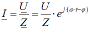 wielkość zespolona A – amplituda ω – prędkość obrotowa, rotacja, pulsacja t – czas φ – kat przesunięcia fazowego |