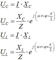 Napięcia na kondensatorze i cewce: