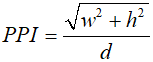 Rozdzielczość PPI dla danego urządzenia liczymy ze wzoru: