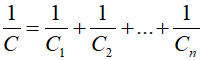 Odwrotność pojemności zastępczej układu jest sumą odwrotności pojemności poszczególnych kondensatorów.