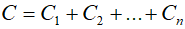 Jak widzisz pojemność zastępcza układu jest równa sumie pojemności poszczególnych kondensatorów.