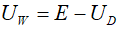 Bateria jest tutaj oznaczona jako siła elektromotoryczna E oraz opór wewnętrzny RW. Suma spadków napięć oraz sił elektromotorycznych w oczku sieci jest równa zero:
