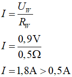 Oporność wewnętrzna RW typowej baterii R6 wynosi około 0,5Ω. Zatem prąd w obwodzie będzie równy: