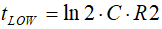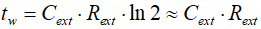 Czas rozładowania kondensatora zależy od jego pojemności C oraz od oporności opornika R2 (wpływ tranzystora T pomijamy dla prostoty). W tym czasie wyjście OUT jest w stanie niskim. Wzór jest następujący: