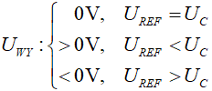 Napięcie odniesienia podawane jest na wejście komparatora. Na drugie wejście podawane jest wejściowe napięcie sterujące: