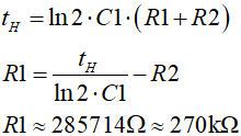 Czas ujemnego impulsu tL jest pomijalnie mały w stosunku do czasu okresu T. W podrozdziale o układzie NE555 podaliśmy wzory, które pozwalają obliczyć oporności i pojemności: