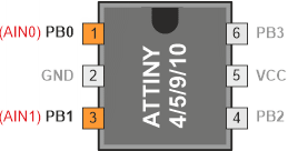 Komparator analogowy (ang. Analog Comparator) porównuje wartości wejściowe na nieodwracającej końcówce AIN0 (ang. Analog Input, wejście analogowe) oraz na odwracającej końcówce AIN1: