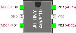 Mikrokontroler ATtiny 5/10 zawiera 8-bitowy,