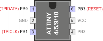 Wejście uaktywniające interfejs programowania TPICLK: Wejście zegara dla interfejsu TPI TPIDATA: Wejście/wyjście danych dla interfejsu TPI |
