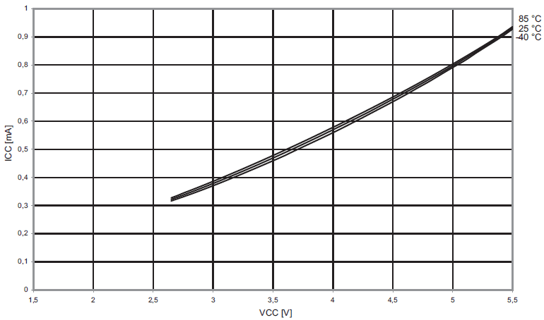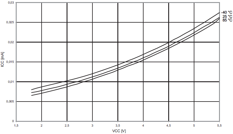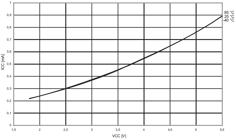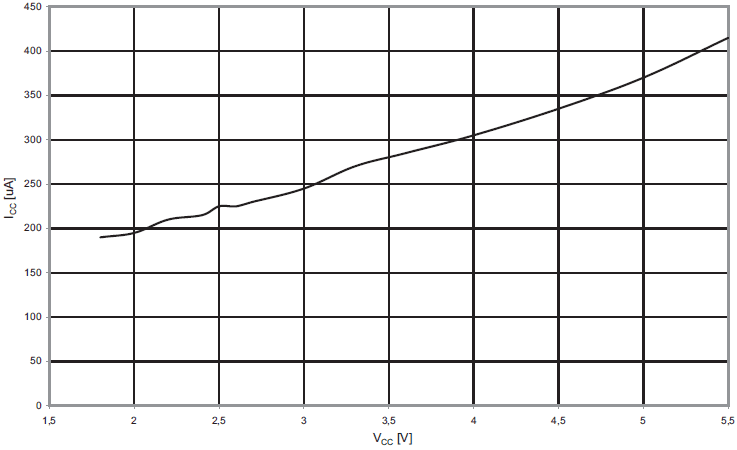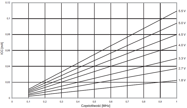 funkcji napięcia wejściowego (VCC = 1,8V)