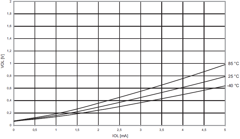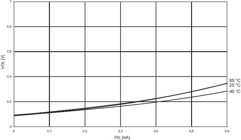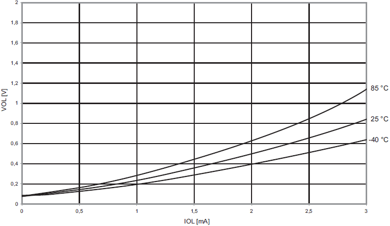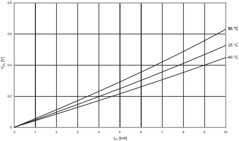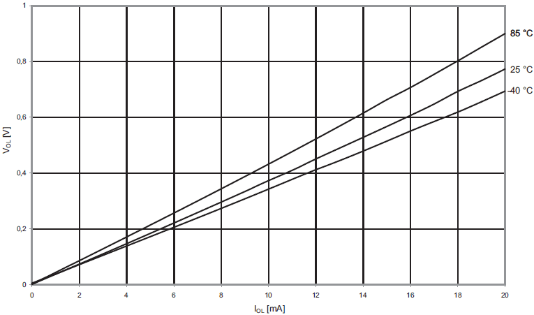 VOL: napięcie wyjściowe w funkcji prądu wpływającego do końcówki