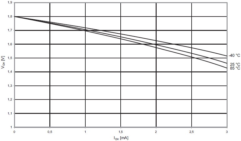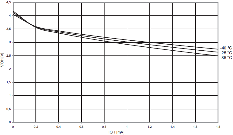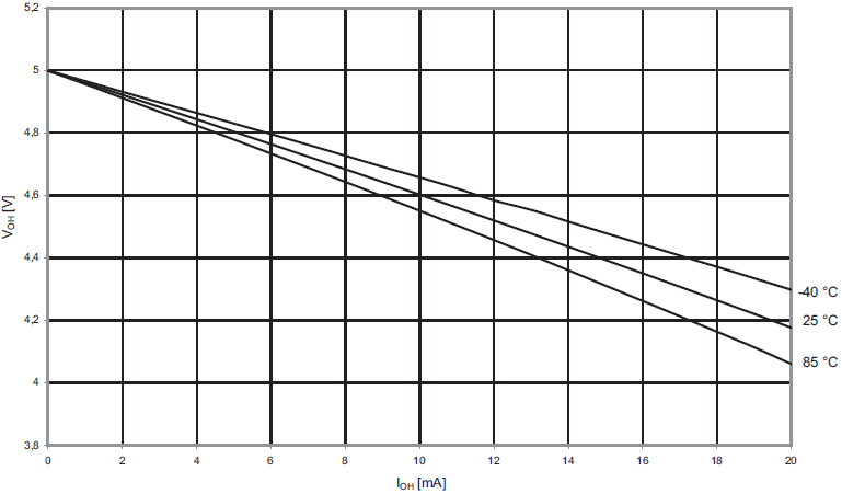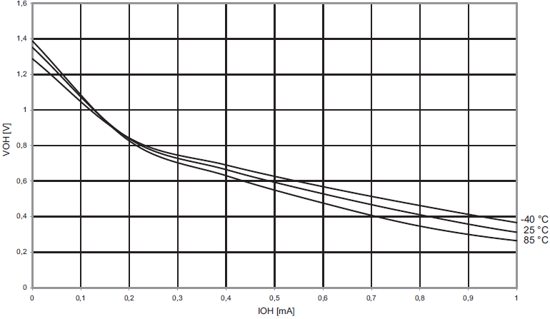 VOH: napięcie wyjściowe w funkcji prądu wypływającego z