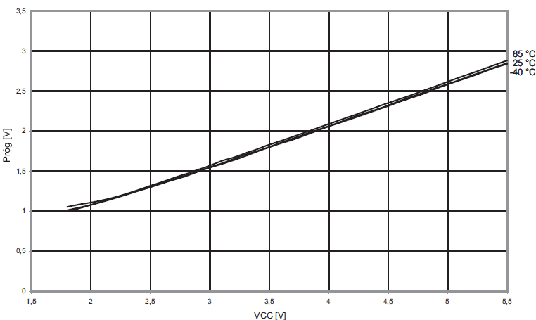 VIL: Próg napięcia wejściowego w funkcji VCC