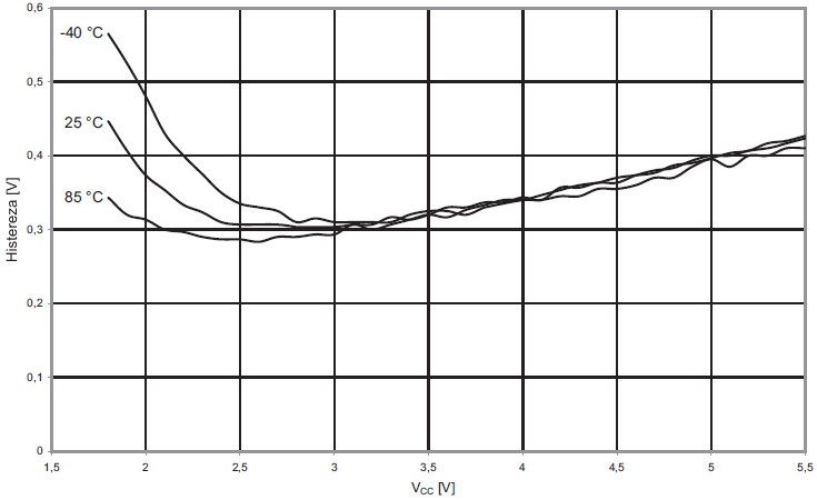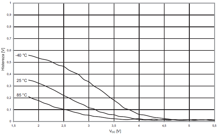 VIH-VIL: Histereza wejściowa w funkcji VCC