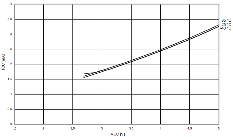 Prąd zasilania w trybie czynnym w funkcji VCC