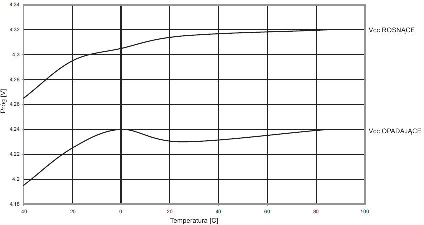 Próg napięcia wejściowego w funkcji VCC (końcówka