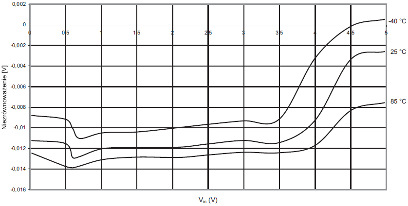 Niezrównoważenie komparatora analogowego w funkcji napięcia wejściowego