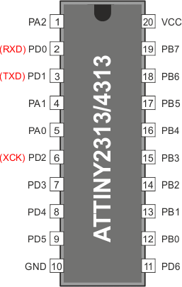 Moduł USART jest w pełni kompatybilny z AVR UART (ang. Universal Asynchronous Receiver/Transmitter – uniwersalny, asynchroniczny nadajnik/odbiornik) odnośnie: