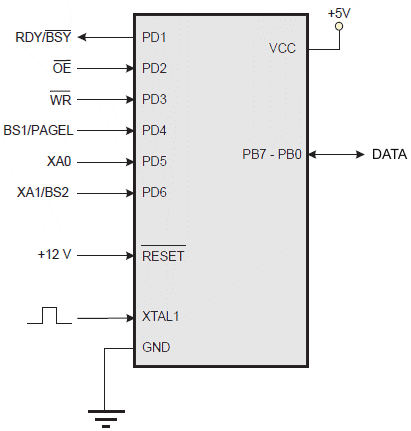 Następujący algorytm wprowadza mikrokontroler w tryb wysokonapięciowego programowania równoległego (ang. Parallel High-voltage Programming Mode):