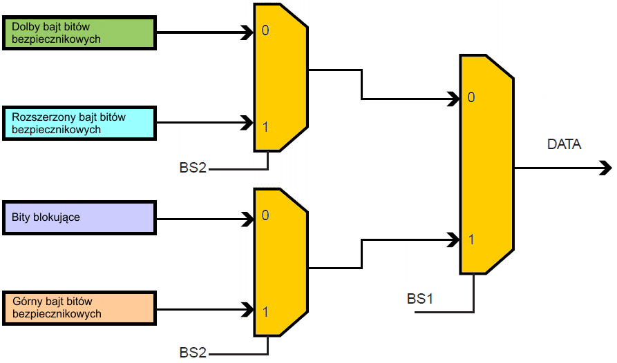 Poniższy rysunek ilustruje odwzorowanie pomiędzy BS1, BS2 a bitami bezpiecznikowymi i blokującymi podczas odczytu: