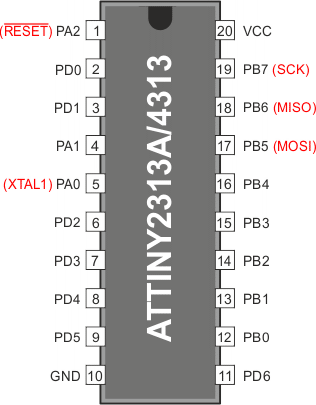 | Ten rozdział opisuje jak programować i weryfikować pamięć FLASH, EEPROM, bity blokowania i bity blokujące w mikrokontrolerze ATtiny2313A/4313. |