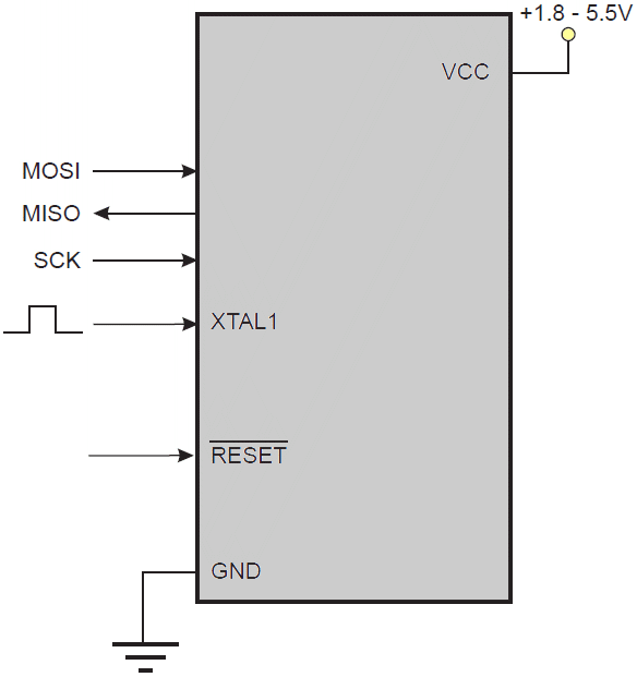 Zależnie od ustawienia bitów bezpiecznikowych CKSEL układ musi być taktowany właściwym zegarem. Minimalne długości okresów niskich i wysokich na wejściu sygnału zegara szeregowego (SCK) są zdefiniowane następująco: