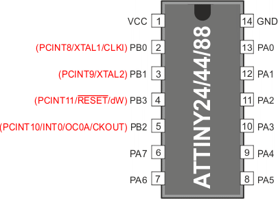 PA3/ADC3/T0/PCINT3 | PA2/ADC2/AIN1/PCINT2 |