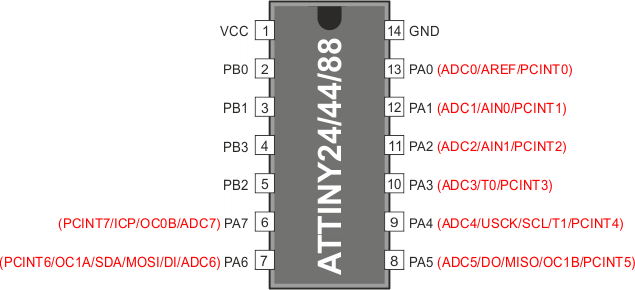 PA1/ADC1/AIN0/PCINT1 | PA0/ADC0/AREF/PCINT0 |