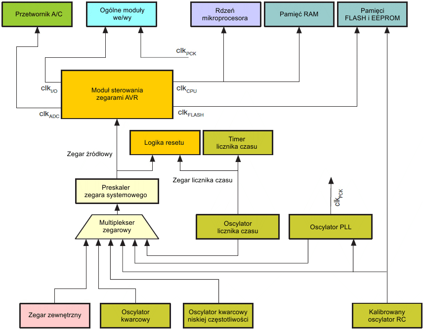| Aktywne źródła zegarowe | Oscylatory | Źródła wybudzania | ||||||||||