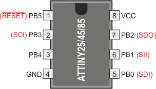 | ATtiny85 | 0x1E | 0x93 | 0x0B |