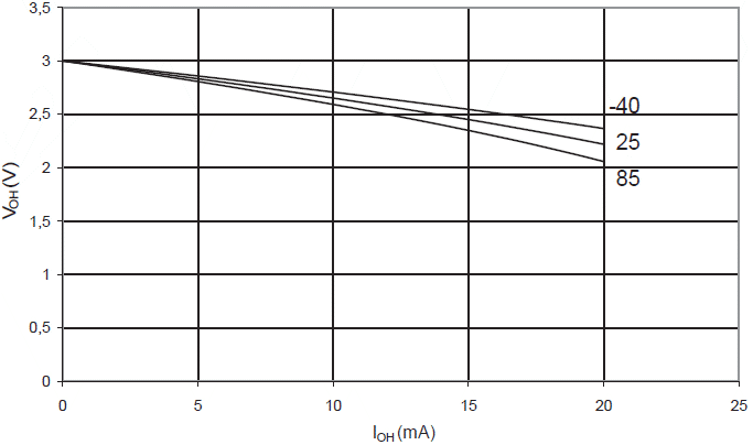 prądu wypływającego (VCC = 3 V)