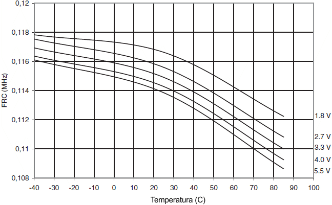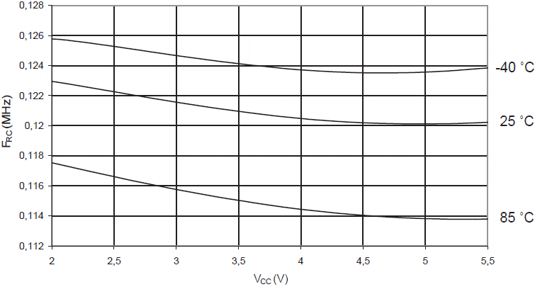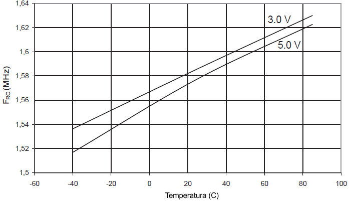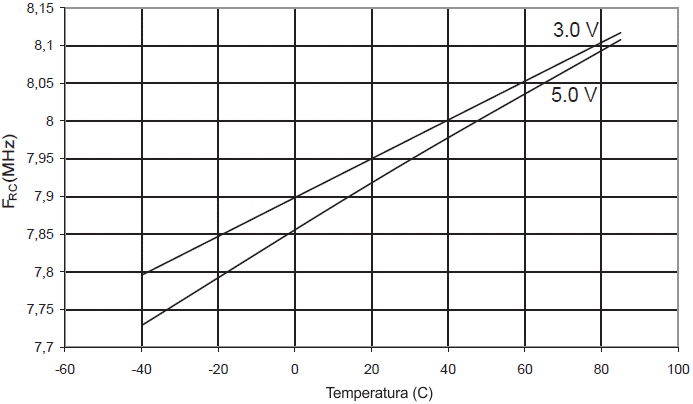oscylatora RC 8 MHz w funkcji temperatury