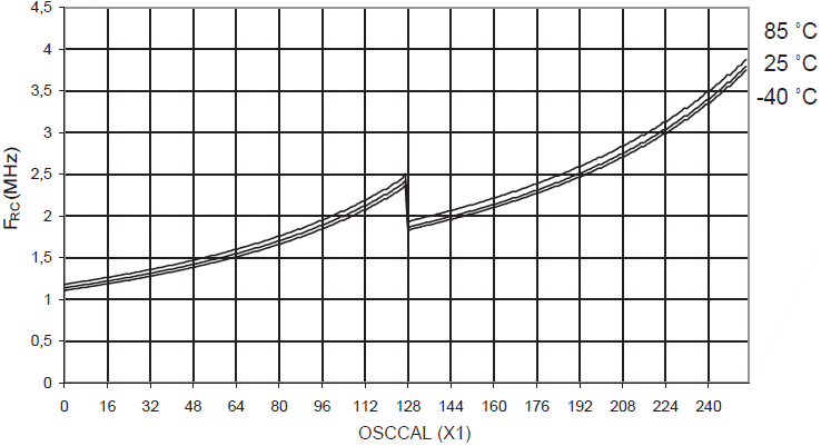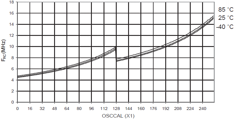 oscylatora RC 8 MHz w funkcji wartości rejestru