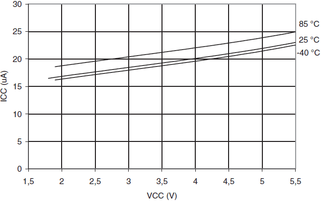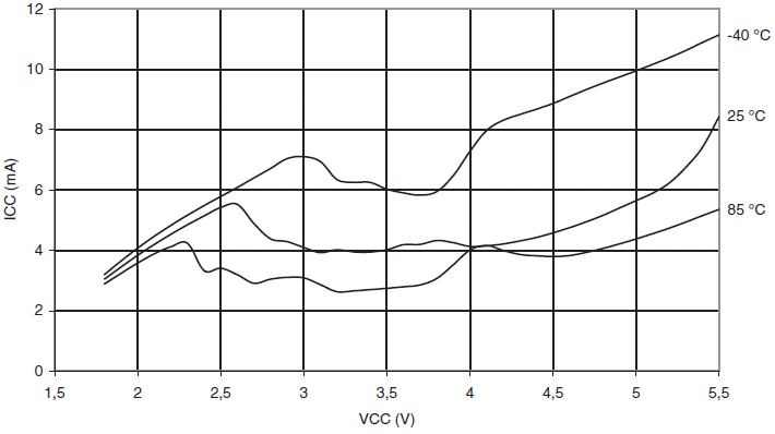 funkcji prądu wpływającego (VCC = 3