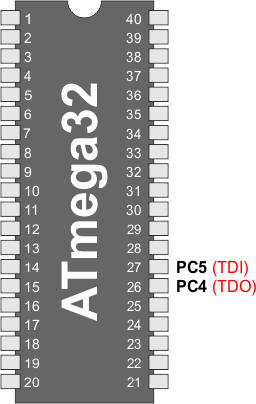 Końcówka TDO pozostaje w stanie niepodłączonym, gdy włączony jest interfejs JTAG, a kontroler JTAG TAP nie przesuwa danych. Jeśli układ sprzętowy połączony z końcówką TDO nie podciągnie w górę poziomu logicznego, to pobór prądu zwiększy się. Zauważ, iż końcówka TDI dla następnego układu w łańcuchu skanowania zawiera opornik podciągający, który eliminuje ten problem. Zapis jedynką bitu JTD w rejestrze MCUCSR lub pozostawienie w stanie niezaprogramowanym bitu bezpiecznikowego JTAGEN wyłączy interfejs JTAG.