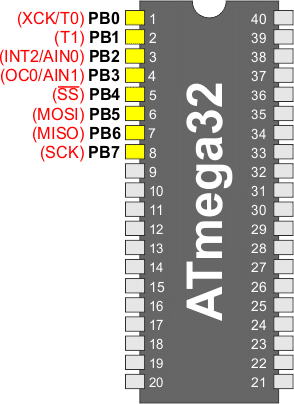 | 0x16 (0x36) | PINB7 | PINB6 | PINB5 | PINB4 | PINB3 | PINB2 | PINB1 | PINB0 | PINB |