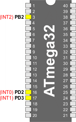 Gdy bit INT0 jest ustawiony na jeden oraz bit I w rejestrze stanu (SREG) jest ustawiony na jeden, zostaje uaktywnione przerwanie od końcówki zewnętrznej. Bity 1/0 kontroli wykrywania przerwania (ISC01 i ISC00) w rejestrze MCUCR definiują rodzaj zdarzenia na końcówce INT0, które wygeneruje przerwanie zewnętrzne 0. Aktywność na tej końcówce spowoduje żądanie obsługi przerwania nawet wtedy, gdy końcówka INT0 została skonfigurowana jako wyjście. Obsługa przerwania zostanie wywołana poprzez wektor przerwania zewnętrznego INT0.
