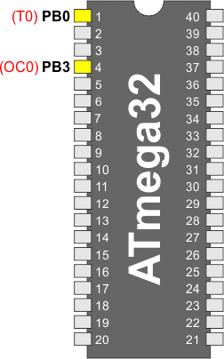 Ogólna funkcja portu we/we zostaje przejęta przez wyjście Output Compare (OC0) z generatora przebiegu, jeśli dowolny z bitów COM01:0 jest ustawiony. Jednakże kierunek końcówki OC0 (wejście lub wyjście) jest wciąż kontrolowany przez rejestr kierunku danych (DDR) dla tej końcówki portu. Bit portu kierunku danych dla końcówki OC0 (DDR_OC0) musi być ustawiony jako wyjście, zanim wartość OC0 stanie się widoczna na końcówce. Funkcja przejmowania jest niezależna od trybu pracy generatora przebiegu.