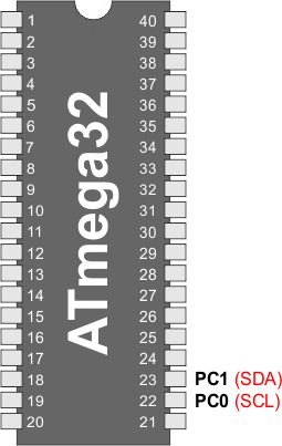 Te końcówki pośredniczą pomiędzy modułem AVR TWI a resztą systemu mikrokontrolerowego. Drajwery wyjściowe zawierają ogranicznik szybkości narastania zbocza sygnału, aby podporządkować się specyfikacji TWI. Stopnie wejściowe zawierają tłumienie impulsów szpilkowych krótszych niż 50 ns. Zwróć uwagę, że wewnętrzne oporniki podciągające można uaktywnić przez ustawienie bitów rejestru PORT odpowiadających końcówkom SCL i SDA, co jest wyjaśnione w rozdziale "Porty we/wy". Wewnętrzne oporniki podciągające mogą w niektórych systemach wyeliminować potrzebę stosowania zewnętrznych.