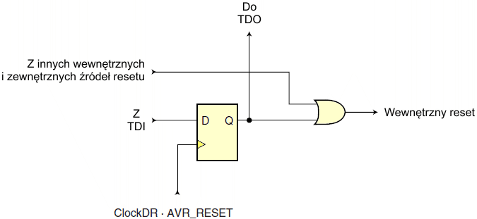 | 5. | Jeśli interfejs JTAG zostanie pozostawiony bez podłączenia, to bit bezpiecznikowy JTAGEN powinien być w miarę możliwości wyłączony. Zapobiegnie to statycznemu prądowi na końcówce TDO w interfejsie JTAG. |