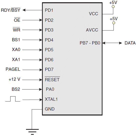 | RDY/BSY | PD1 | wy | 0: mikrokontroler jest zajęty programowaniem, 1: mikrokontroler jest gotowy na nowy rozkaz |