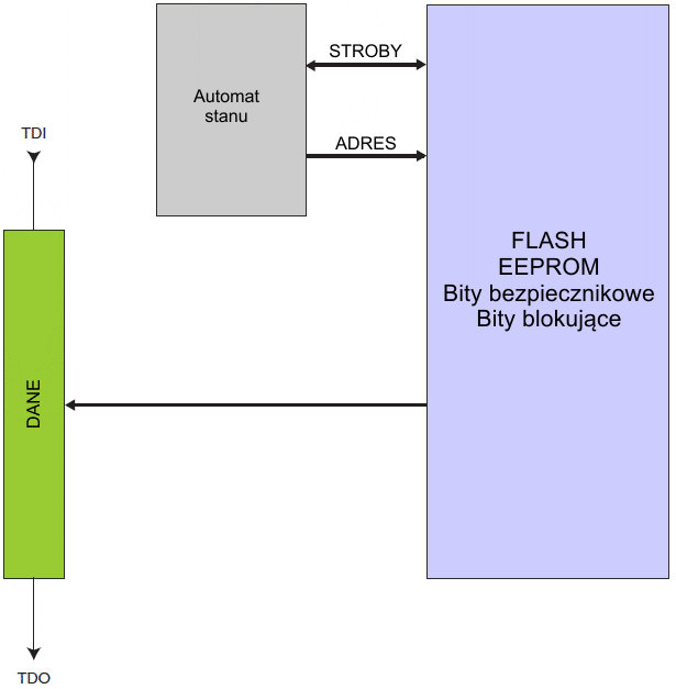 | 2 | 1 | 0 | Dalsze programowanie FLASH i EEPROM jest zablokowane w trybie programowania równoległego i szeregowego. Bity bezpiecznikowe są zablokowane w obu trybach programowania(1). |