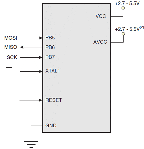 | CKSEL3 | 3 | Wybór źródła zegarowego | 0 (zaprogramowane)(2) |