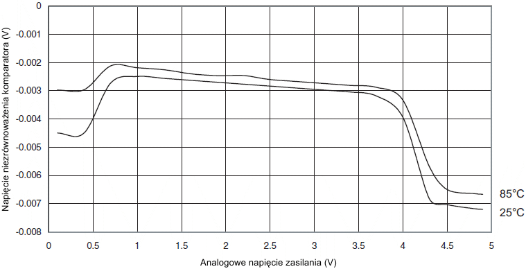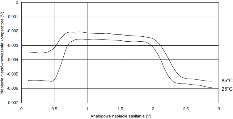 Napięcie niezrównoważenia komparatora analogowego w funkcji analogowego napięcia